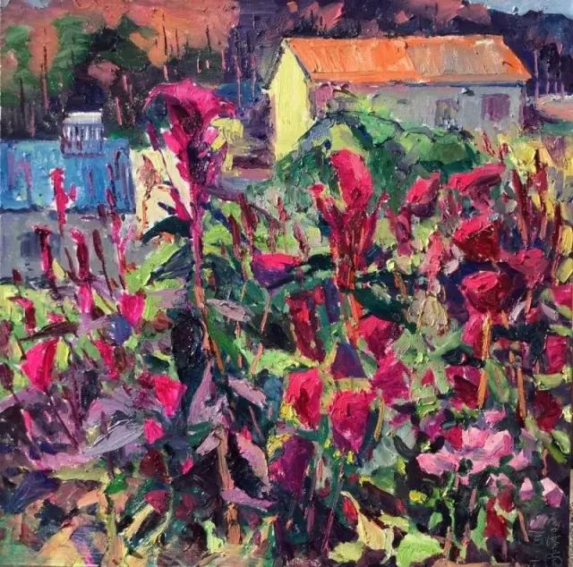 在李生南作品中還有一樣重要的表現(xiàn)方式,就是有一種含蓄的詩一般的意境。他喜歡畫小場景,在人們忽視的角落中發(fā)現(xiàn)美,比如,一組瑣碎的野花、一個(gè)晾曬的被罩,甚至是一片毫無生機(jī)的枯草,他都能夠?qū)⑵滟x予新的藝術(shù)生命力。他一路走來且歌且行、百折不回,更多時(shí)間是在大自然的寫生中度過的,他的作品如歌如訴、意境深邃。
