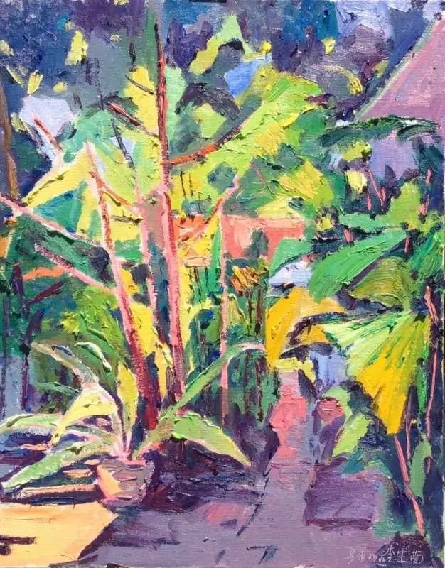 李生南在寫生中對(duì)于自然界的物體善于概括,不僅是繪畫這樣,他處理問題也是如此,總能在紛亂復(fù)雜的事物中找到頭緒,思路敏捷、條理清晰、高屋建瓴。正是因?yàn)樗邆溥@樣的觀察能力,眼前錯(cuò)綜復(fù)雜的物體才分門別類地呈現(xiàn)在畫面上。他崇尚大自然,他認(rèn)為原生態(tài)的大自然是最美的,所以,自然景色在他頭腦里形象思維的影像變得夸張起來。他的作品在高度概括以及有序的張力作用下,呈現(xiàn)出一種自然和諧之美。