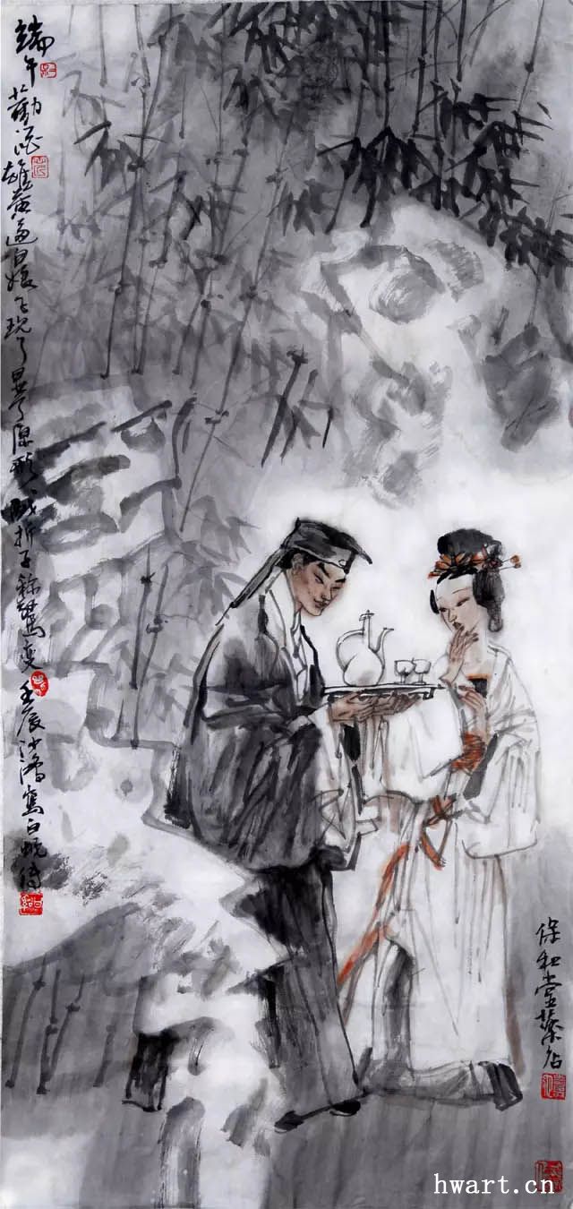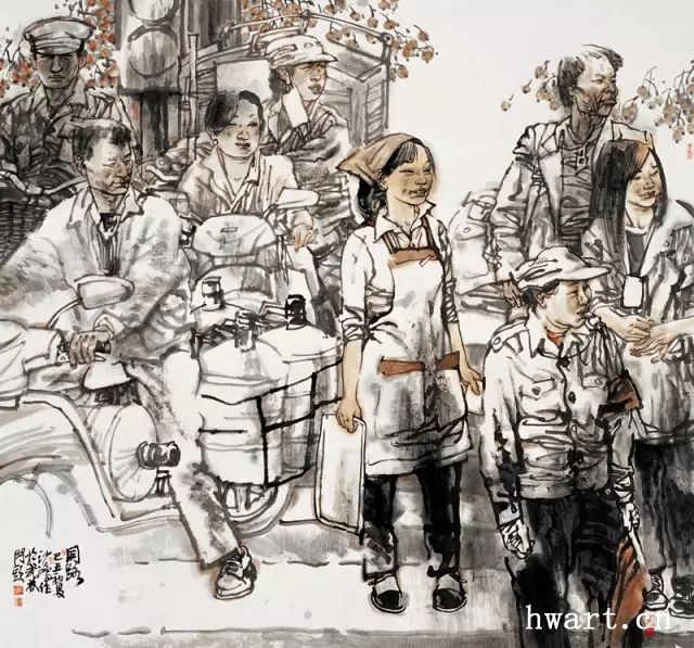 將中國(guó)傳統(tǒng)書(shū)畫(huà)的理念、筆墨技法與有點(diǎn)科學(xué)意味的寫(xiě)實(shí)人物畫(huà)技術(shù)結(jié)合很像走鋼絲。筆墨一瀟灑,人物易走形;形象一準(zhǔn)確又約束了筆墨發(fā)揮。只有具備扎實(shí)的造型功底,方可將人物化作胸中成竹,才有可能循著文人畫(huà)藝術(shù)的特點(diǎn),講究書(shū)法運(yùn)筆,融合花鳥(niǎo)畫(huà)和山水畫(huà)的表現(xiàn)手法,重視磨練“筆性”,欣賞筆端上流露的書(shū)卷氣和技術(shù)高度。使畫(huà)作不失于近似速寫(xiě)的草率,不掉入為了塑造的呆滯,而留下筆的神氣、墨的韻味和筆筆生發(fā)開(kāi)來(lái)的意外效果。