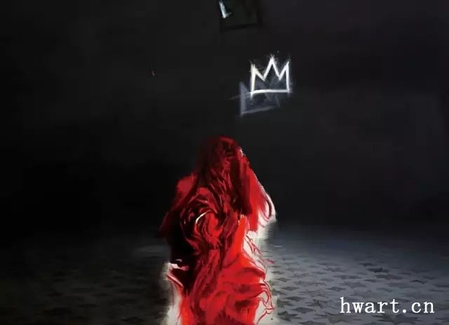 最新的作品顯示,這種通過(guò)人體和發(fā)光體來(lái)統(tǒng)攝黑暗世界的華彩高潮并傳遞出難忘神性與詩(shī)意的訴求,又有了新的變化和內(nèi)涵。黑暗中裹挾著的混沌煙塵漸漸淡去,黑暗開(kāi)始顯露出它的巨大無(wú)邊,猶如幕布般包圍和籠罩著泛白的大地。在《神婆Sylvie之翅翼流風(fēng)》、《玫瑰之妖與Basquiat之冠》和《公元847年,關(guān)于紅塵的一次觀看》三件作品里,畫(huà)面空間更加明晰清朗,黑暗的天幕與地面形成深不可測(cè)的三度空間,烘托出前景形象的荒誕感。事實(shí)上,這種前景與背景之間張力并非兩極對(duì)立,而是通過(guò)旋轉(zhuǎn)躍動(dòng)和明暗閃耀的光線前后貫通起來(lái),讓空間介質(zhì)滲透著莫名的精神氣息。