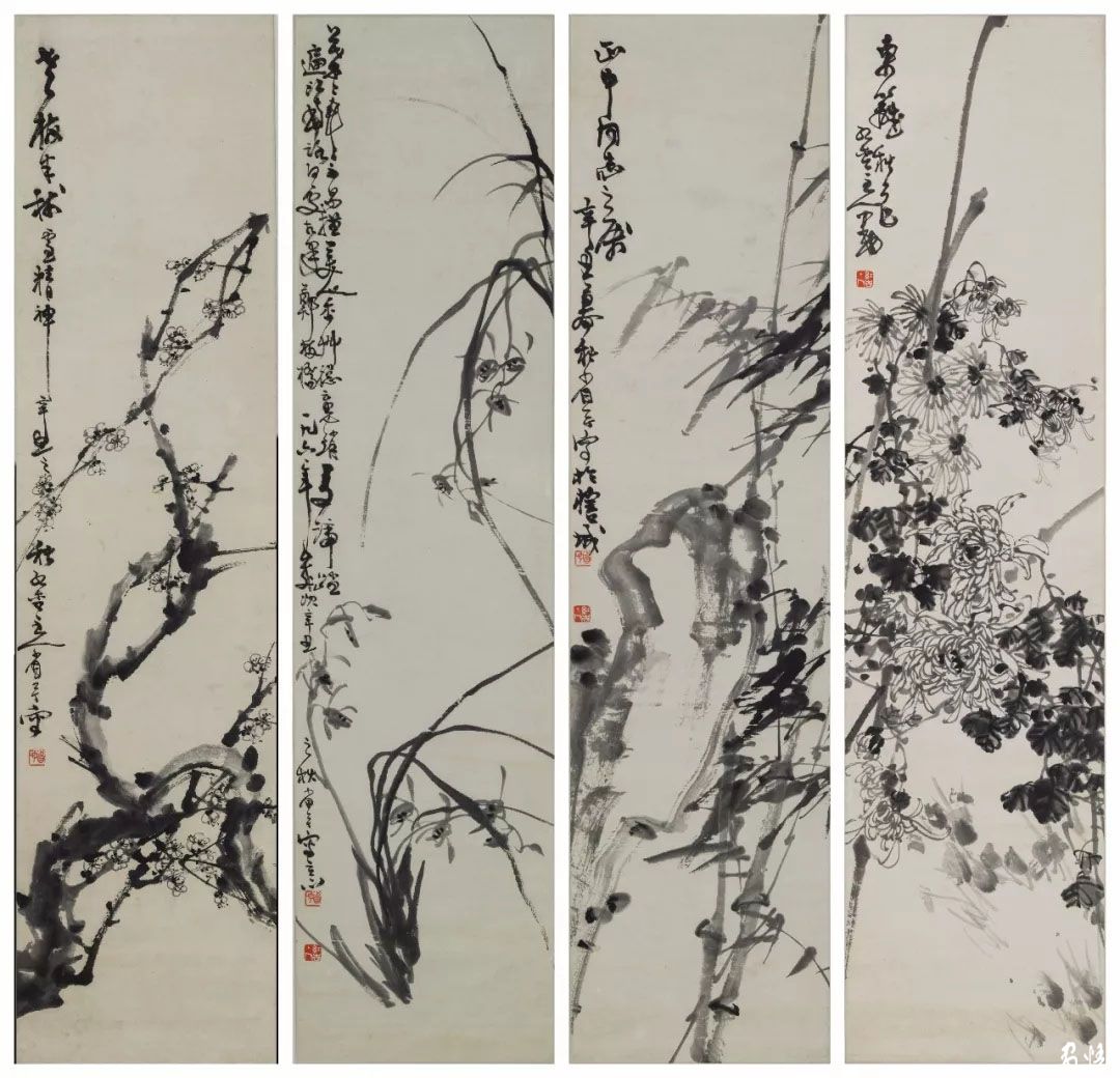宋省予作于1961年的“梅蘭竹菊”四條屏作品,就是這樣的杰作,同樣即將亮相福建東南拍賣2018春季藝術(shù)品拍賣會“翰墨集珍—中國書畫專場”。