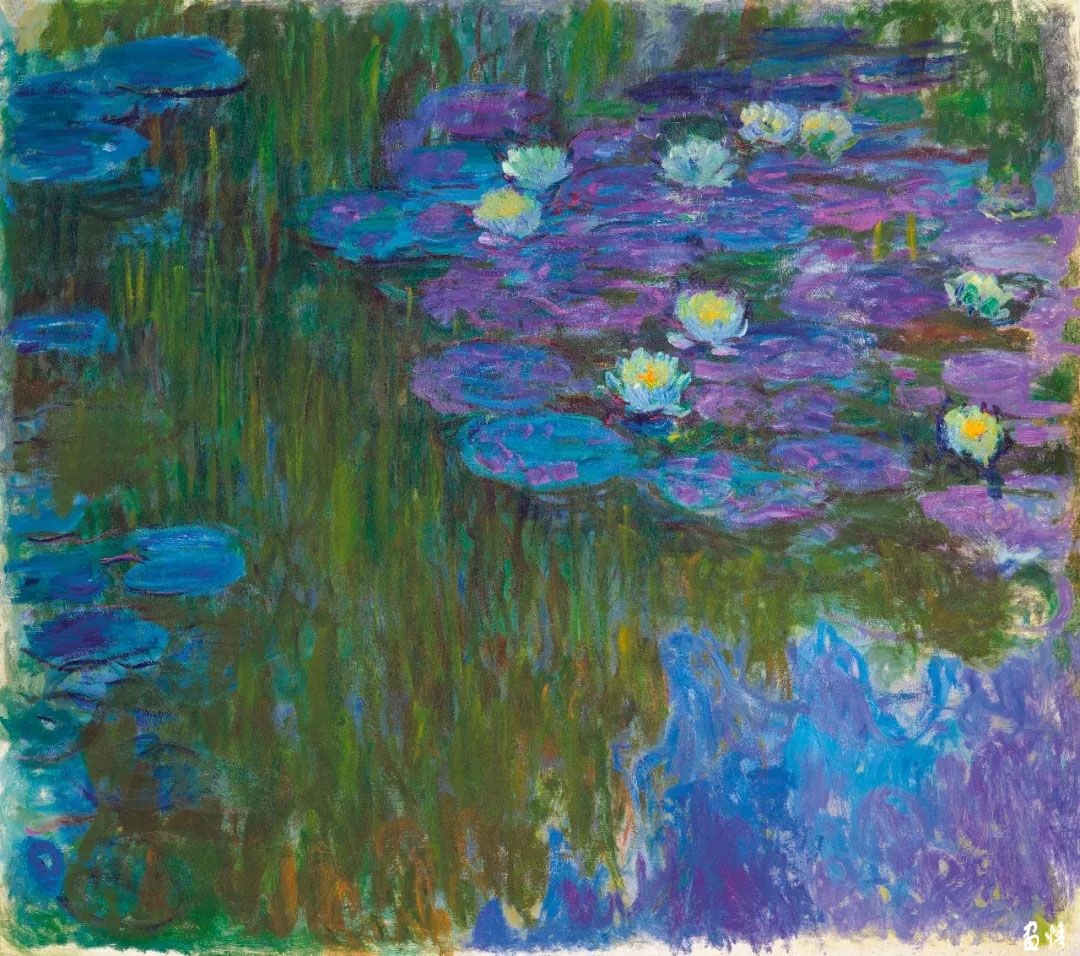 《綻放的睡蓮》是莫奈眾多頌揚(yáng)大自然的作品中,最大型、色彩最明亮奪目及筆觸最有力的作品之一。大衛(wèi)?洛克菲勒夫婦于1956年購(gòu)下此作?!斑@件作品幾乎可以肯定是在傍晚時(shí)分繪畫的,池塘的水呈深紫色,蓮花綻放出耀眼的白色光芒。我們立即買下了此畫?!贝笮l(wèi)曾如此回憶道。該作曾懸掛在哈德遜松林(Hudson Pines)大宅的梯級(jí)間。