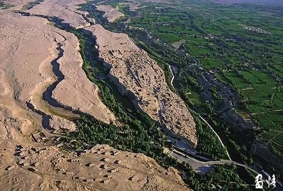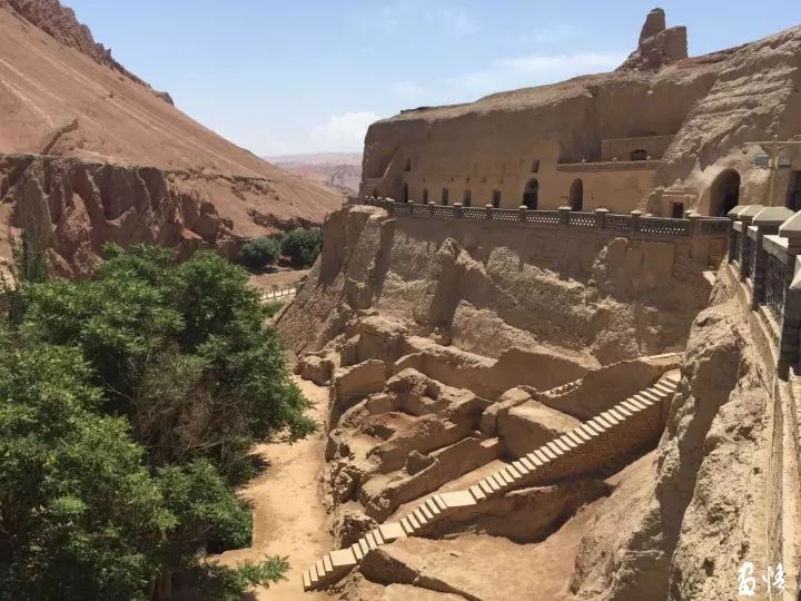 柏孜克里克千佛洞上層為洞窟,下層為地面寺院