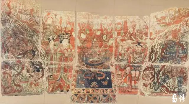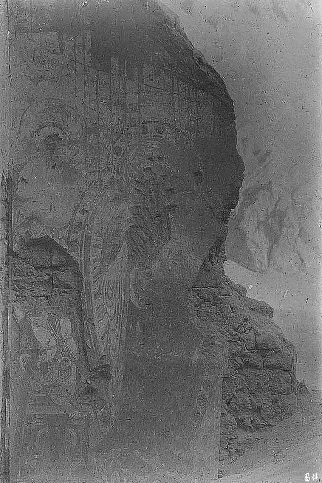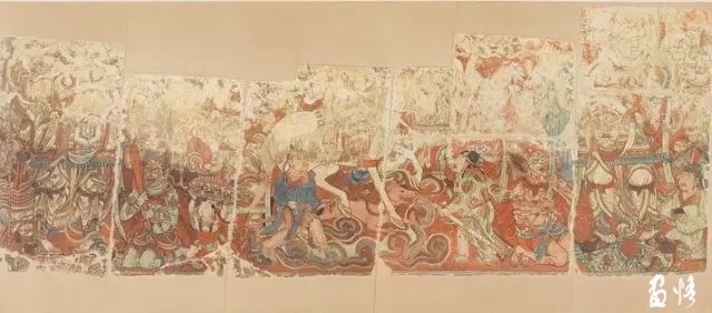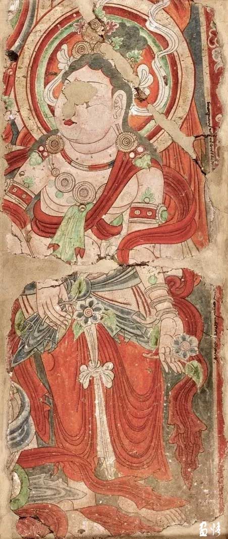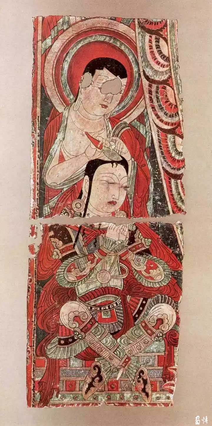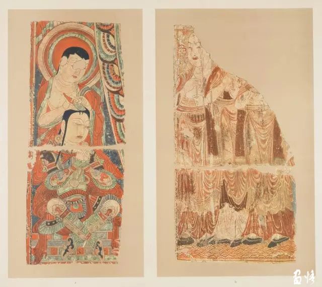 隨即他們?cè)谝粋€(gè)洞窟中,發(fā)現(xiàn)繪滿色彩的壁畫(huà),有諸佛和各種姿勢(shì)的菩薩,有的合十、有的散花、有的奏樂(lè)。天人的舞姿、魔鬼的兇相,色彩、用筆都有很高的造詣。還有泥翅佛像,對(duì)歐洲人盜取壁畫(huà)的方式氣憤之余的日本人也取出了特制的“狐尾鋸”切割了足以欣賞的壁畫(huà)7塊,獲得泥塑佛像7身。