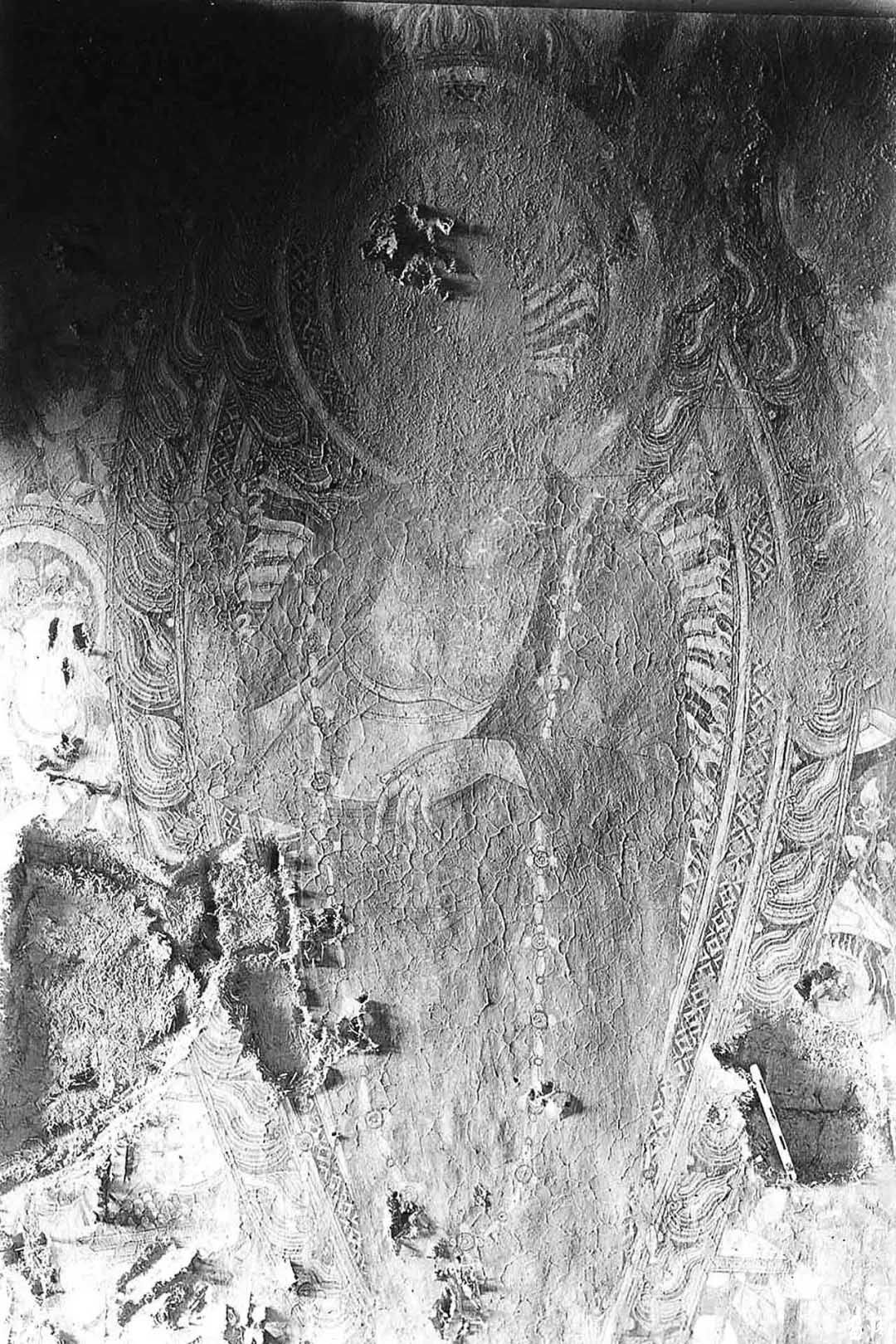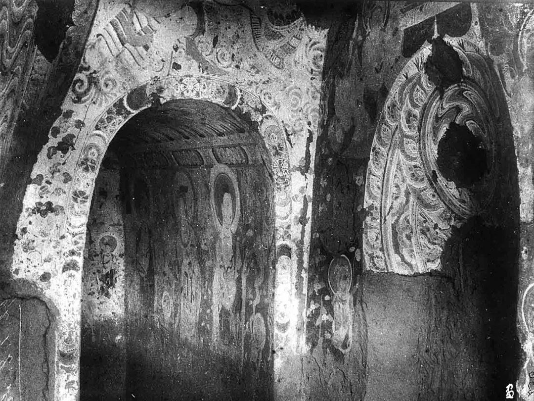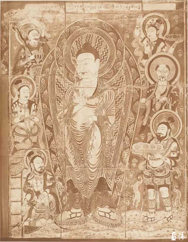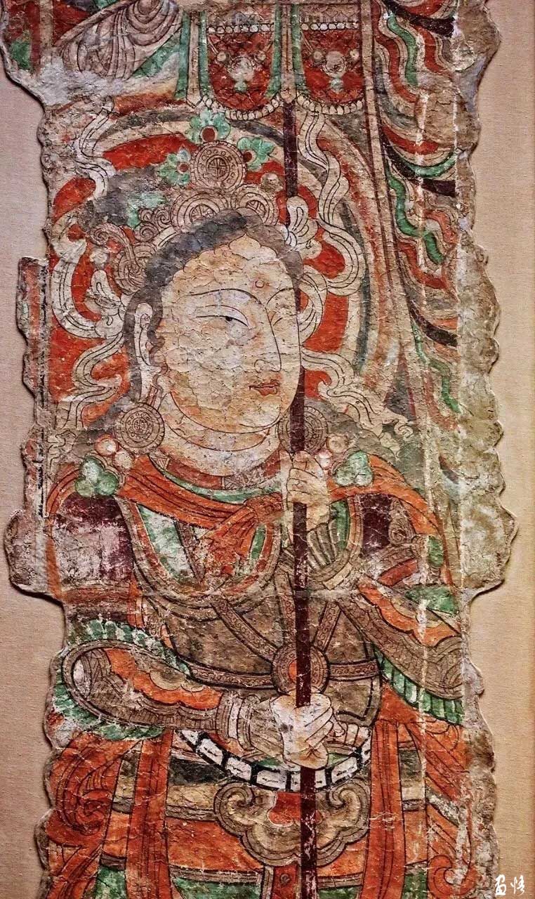 隨即他們?cè)谝粋€(gè)洞窟中,發(fā)現(xiàn)繪滿色彩的壁畫(huà),有諸佛和各種姿勢(shì)的菩薩,有的合十、有的散花、有的奏樂(lè)。天人的舞姿、魔鬼的兇相,色彩、用筆都有很高的造詣。還有泥翅佛像,對(duì)歐洲人盜取壁畫(huà)的方式氣憤之余的日本人也取出了特制的“狐尾鋸”切割了足以欣賞的壁畫(huà)7塊,獲得泥塑佛像7身。