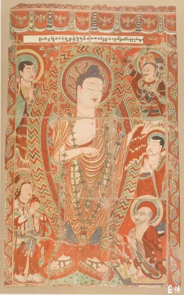 誓愿圖主要是指柏孜柯里克石窟第32窟、第23等窟釋迦牟尼佛于前生供養(yǎng)諸佛的佛立像圖,有人稱之為《說(shuō)法圖》,也有學(xué)者稱之為《供養(yǎng)畫(huà)》。誓愿圖是由來(lái)自東、西方和敘利亞的畫(huà)家在十至十一世紀(jì)期間創(chuàng)作了這組佛教壁畫(huà)。壁畫(huà)是在日曬磚墻上涂上摻有植物纖維的石灰土,用青金石、氧化銅、朱砂、金箔等作為顏料繪制而成的。圖像大都袒右肩立佛,通身背光,有頭光,旁有弟子、菩薩、天王及供養(yǎng)人圍繞。有的還畫(huà)有駱駝、驢、馬及房舍、園林。整個(gè)畫(huà)面大都呈紅色基調(diào),繪制細(xì)密。人物造形及服飾帶有明顯的地方特色。