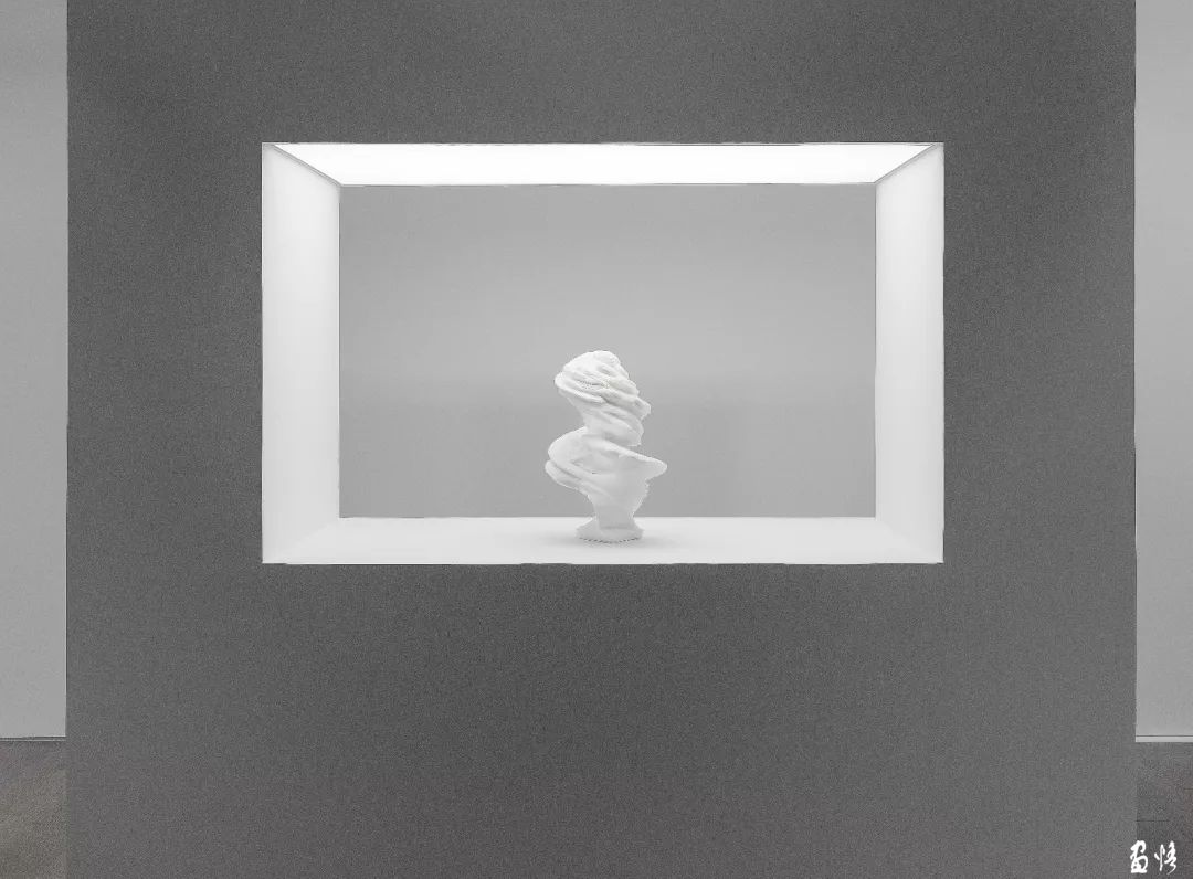 現(xiàn)場有兩件的原型是清代象牙雕塑,經(jīng)過藝術(shù)家的“扭轉(zhuǎn)”,看起來大理石也有了象牙的質(zhì)感。嗯,盡管藝術(shù)家的官方說法是:“通過對日常司空見慣的事物去語境化,藝術(shù)家借此重新定位傳統(tǒng)與現(xiàn)代之間的二元關(guān)系,一場‘歷史事物的變革’就此上演。”其實,就是藝術(shù)家的樂園嘛,向迪士尼樂園致敬!——要知道,迪士尼樂園既是商業(yè)消費時代的終極大IP,又是成功的藝術(shù)傳奇。一舉兩得,引多少追隨者仰望!相比之下,扭轉(zhuǎn)雕塑系列則顯得“蒼白”了一些,除了技術(shù)和視覺上的驚奇,藝術(shù)的力量不如德爾維其他的系列。