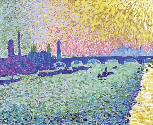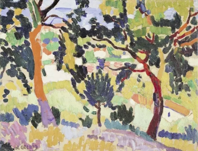 事實上野獸派畫家從顏料管里擠出的原色,不是直接排列到畫布上的而是應(yīng)自然本色來加以概括,使它更單純化,免去復(fù)雜的中間調(diào)子,不僅能引起觀者視網(wǎng)膜的振動感應(yīng),還表達了一種飽和的情緒,比點彩派的"科學(xué)"排列更富感染力。