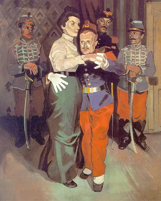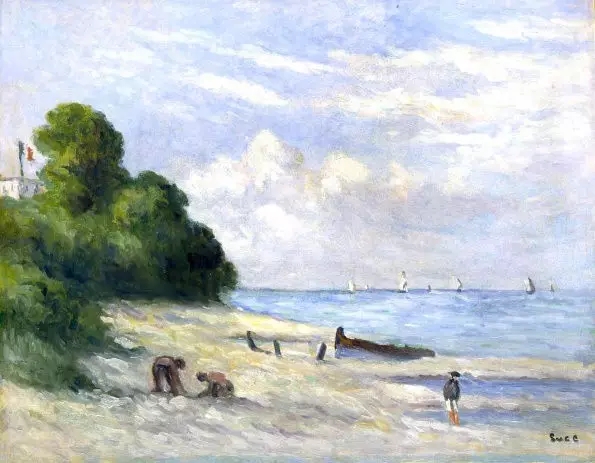 但是他的藝術(shù)表現(xiàn)、空間處理和造型并沒有脫離古典法則,色調(diào)也類似新印象主義,看得出畫家想把傳統(tǒng)與現(xiàn)代結(jié)合在一起的愿望。