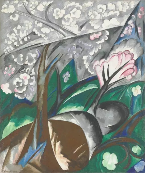 在畫中他賦予了色彩以獨立的地位,明亮的紅、黃、藍、綠等色彩構(gòu)成了強烈而和諧的對比。畫中色彩具有爆炸的耀眼光芒,令觀者振奮。