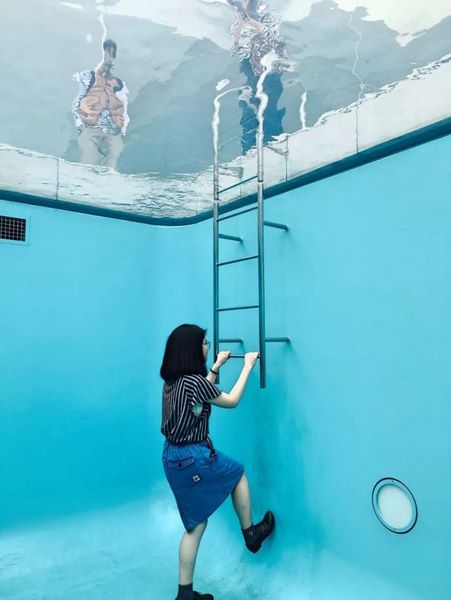 當(dāng)然,這樣充滿了鏡子的互動(dòng)式作品也成為了參觀者的拍照圣地。一面體驗(yàn),一面接著隨手拍照繼而發(fā)到社交平臺(tái)上,又順帶宣傳了這一件作品。這個(gè)展覽之前,林德羅·厄利什的許多作品都在網(wǎng)絡(luò)上十分流行,在twitter上的出現(xiàn)頻率之高讓人無(wú)法忽視。但是,在手機(jī)圖片上看到的這件作品大概永遠(yuǎn)無(wú)法與現(xiàn)場(chǎng)感受到的視覺(jué)幻象媲美。