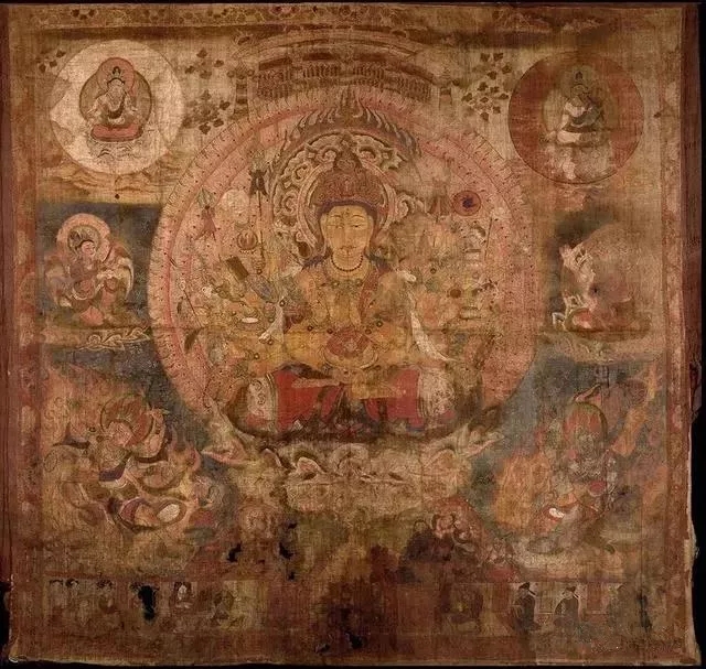 英藏敦煌唐代麻布畫:千手千眼觀音菩薩像 麻本設(shè)色 唐代 8世紀(jì)末~9世紀(jì)初 規(guī)格:101 x 102.5 cm
