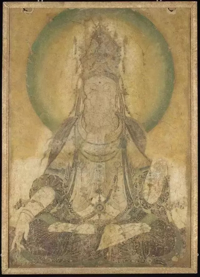 此畫發(fā)現(xiàn)于敦煌藏經(jīng)洞,斯坦因所搜藏之圖像,系唐末之作品。