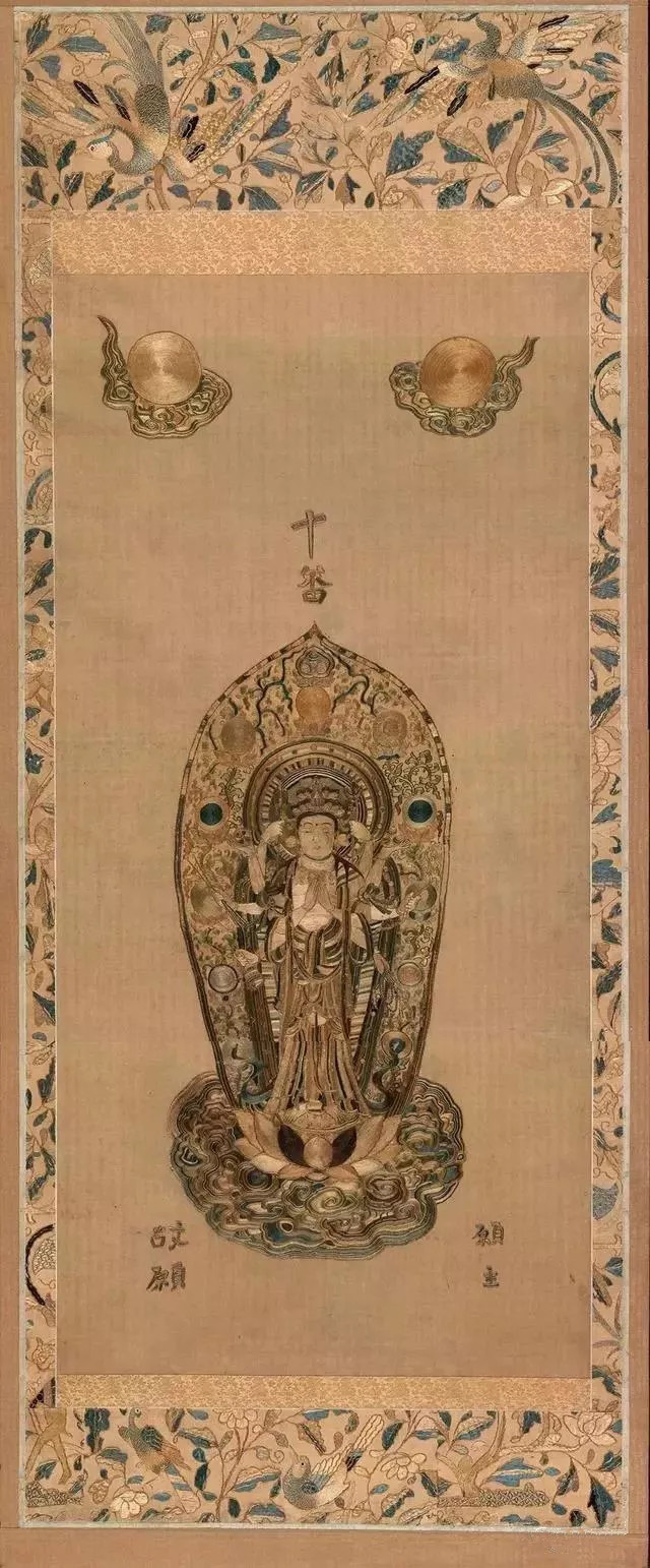 刺繡十一面觀音菩薩立像 十五世紀(jì) 室町時(shí)代刺繡佛畫 絹本刺繡貼花 尺寸:195 x 79 cm 美國大都會(huì)藝術(shù)博物館收藏