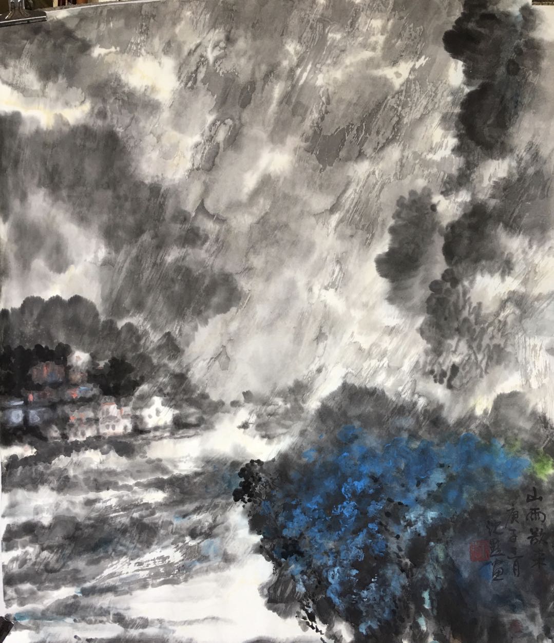 2017年作品《春風(fēng)點(diǎn)染大地新》參加香港全球水墨大展。