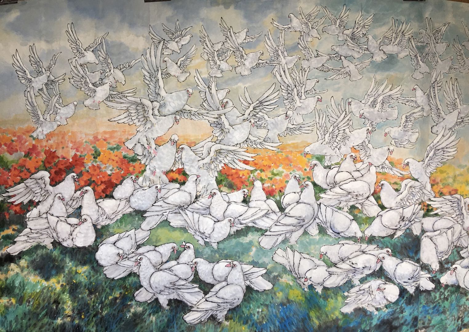 2010年應(yīng)邀為香港中聯(lián)辦創(chuàng)作巨幅作品《和諧頌》。