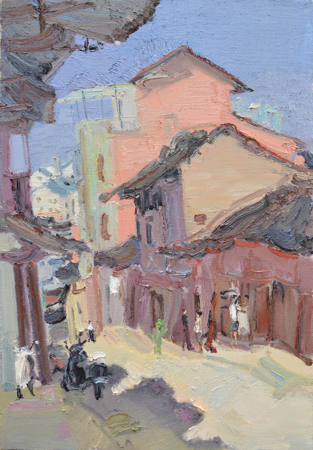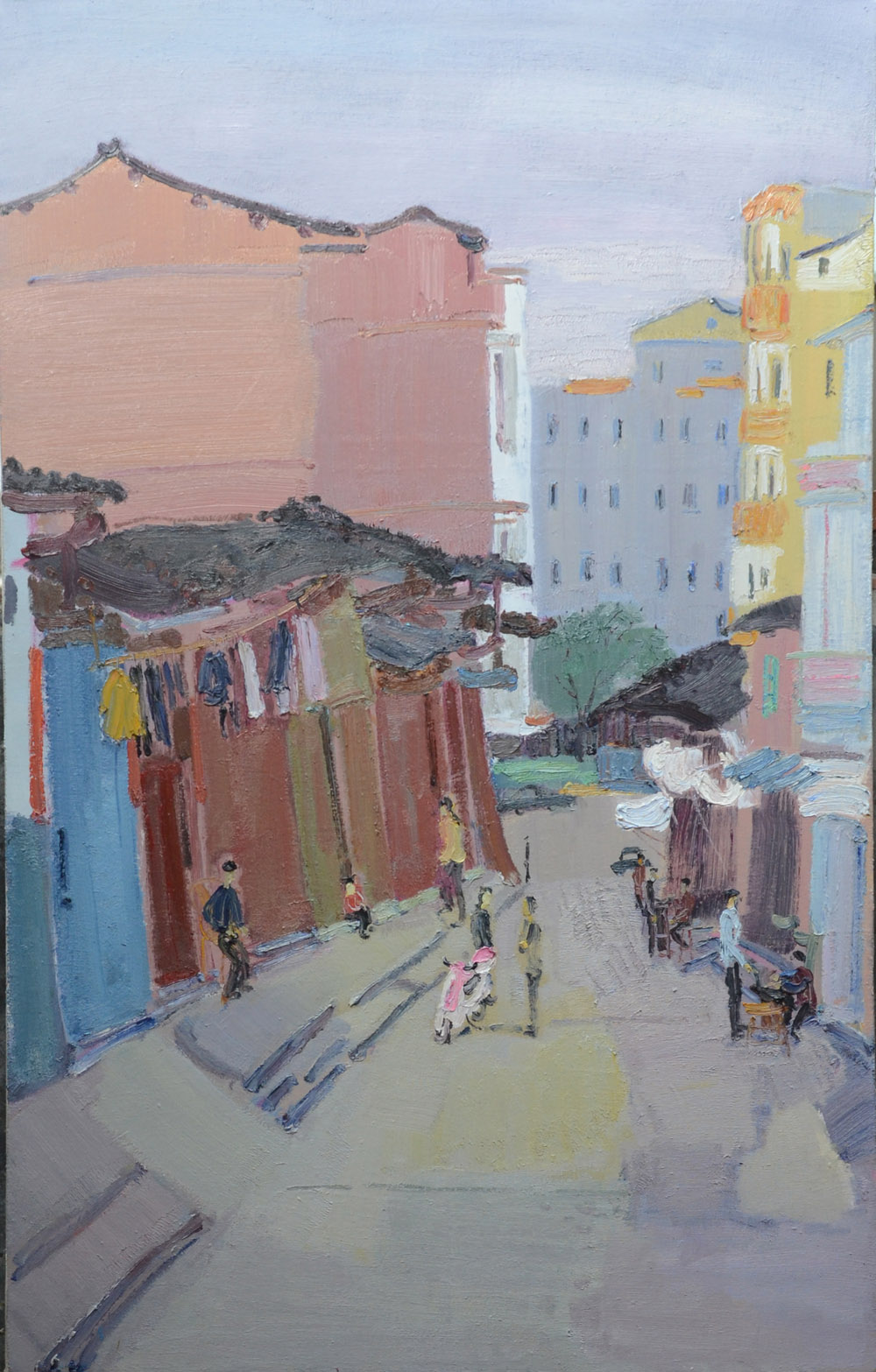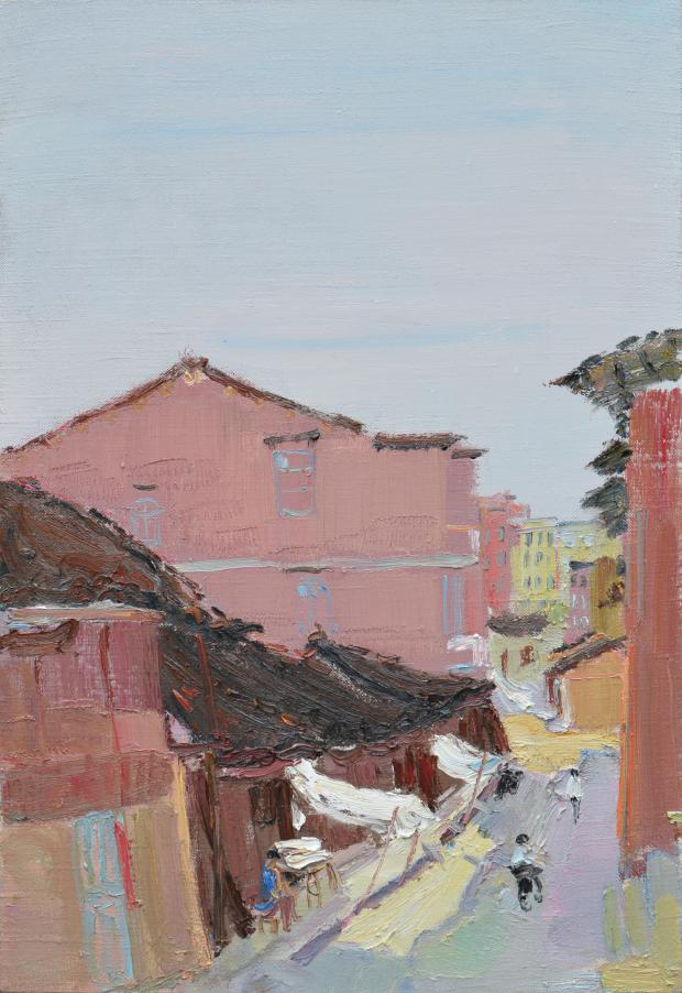 油畫作品《小街存古鎮(zhèn)》2018年入選紀(jì)念改革開放四十周年正青春福建省青年美術(shù)作品展。(福建省美術(shù)家協(xié)會)
