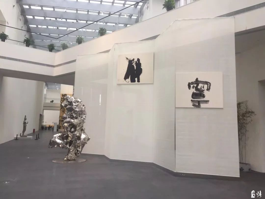 三百多件作品,包括體量龐大的書法、雕塑、裝置,只有全部看過,才知道從容策展的用心。祝曉峰設(shè)計的展示空間峰回路轉(zhuǎn)、移步換景,如置身傳統(tǒng)園林中。整個展廳我轉(zhuǎn)了不止一遍,第一遍是走馬觀花,第二遍才是細(xì)細(xì)看作品,用了大概三個小時。