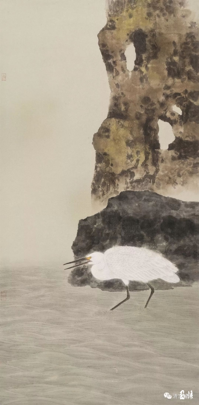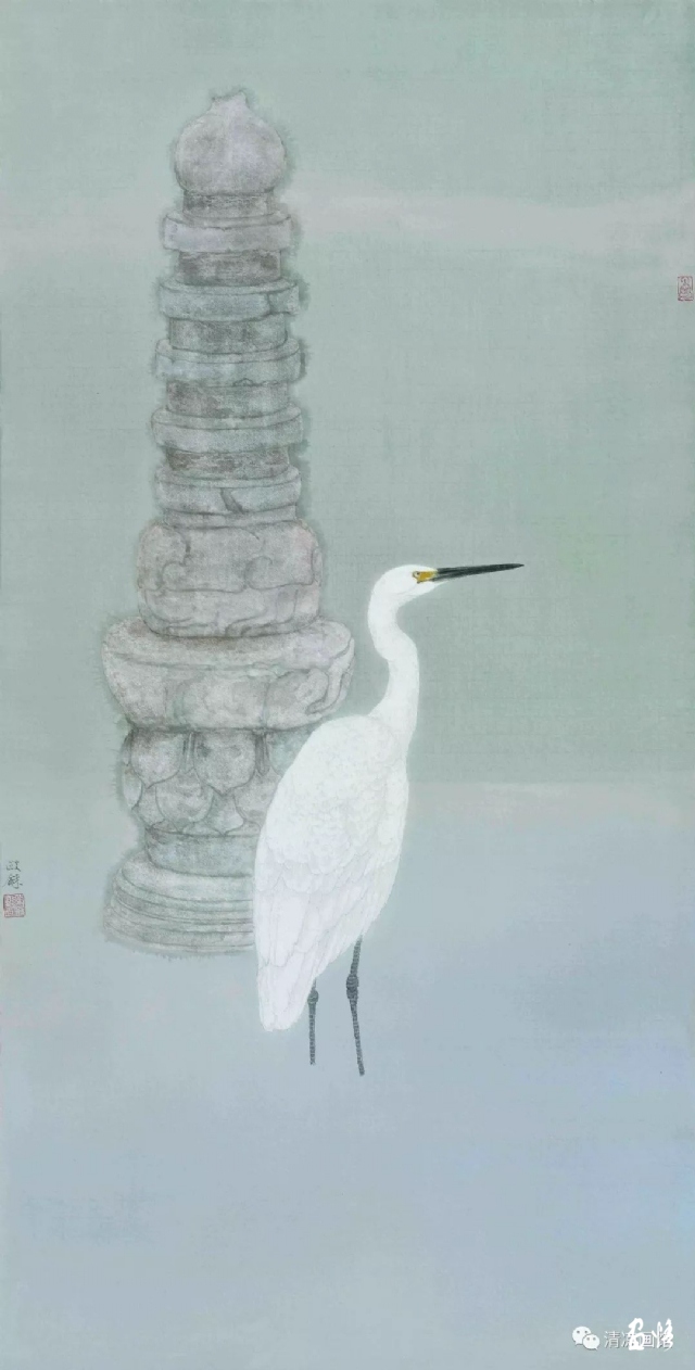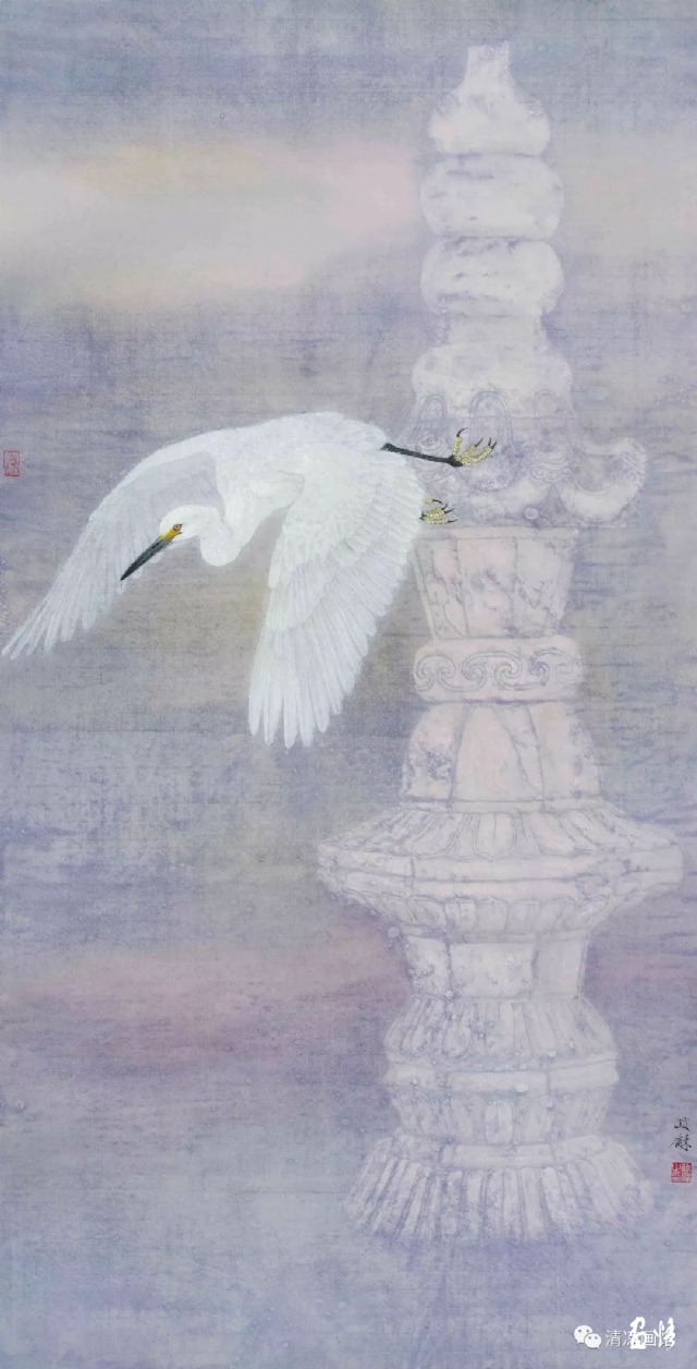 《白鷺下經(jīng)幢》 138×70cm 2016年