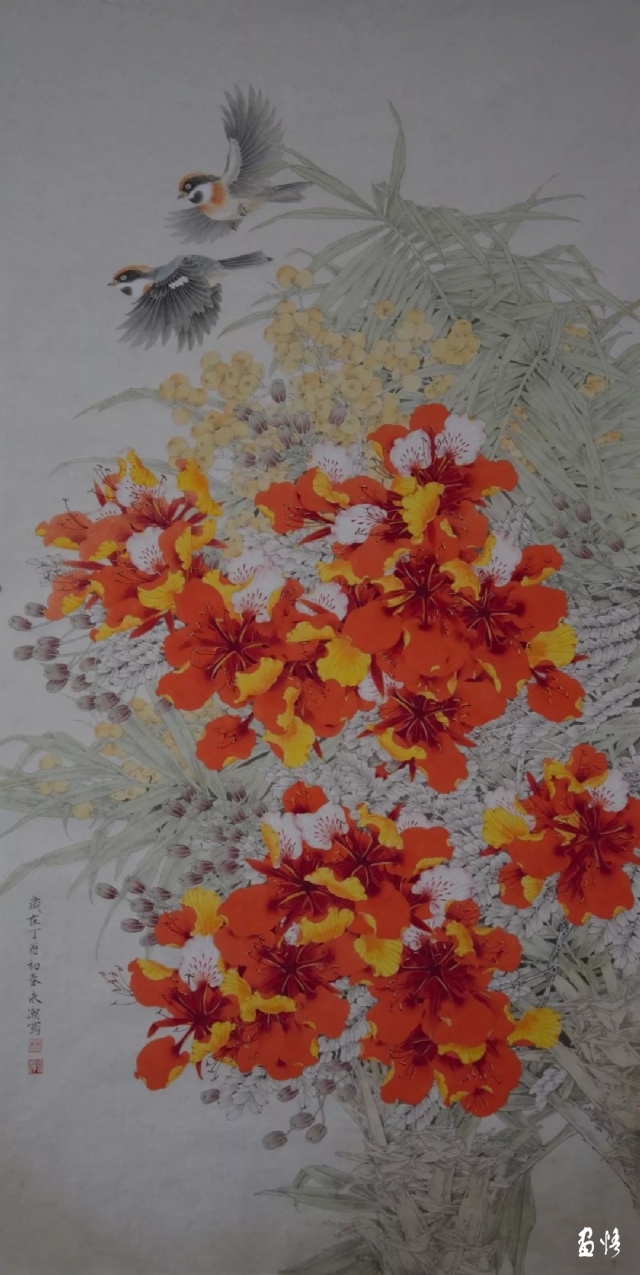 林永潮之畫造型嚴(yán)謹(jǐn),刻畫精致,無論花鳥人物皆富有生活氣息,一派生機;