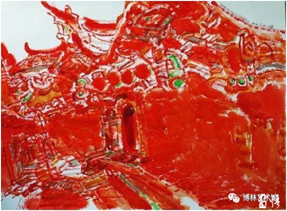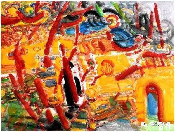 黃永生筆下的《紅土地》以斑斕炫目的色彩,鮮艷濃烈的色塊展示了渾然天成的美麗畫卷。