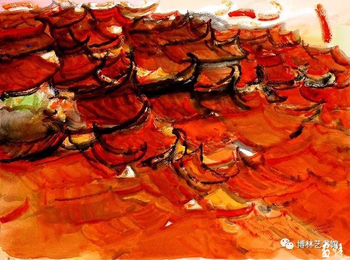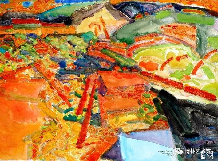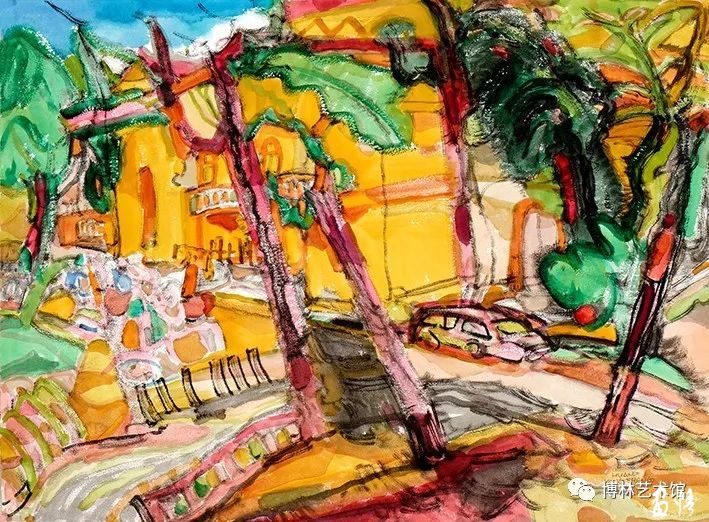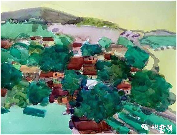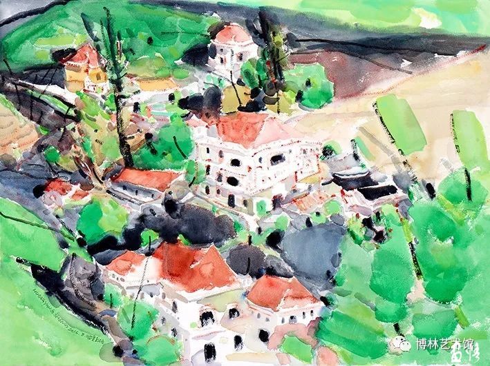 深厚的油畫功底,使其水彩的用色上大膽豪放,濃郁熱烈,層疊皴擦中濃淡相宜,野趣盎然,或虛實相補,或剛柔相濟。