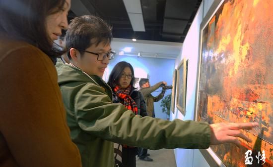 異號(hào)——2018上海抽象畫會(huì)春季展現(xiàn)場(chǎng) 參展青年藝術(shù)家馬俊營(yíng)給觀眾講解