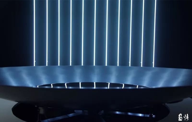△《反射失真》,卡斯滕·尼古拉,霓虹燈、水、鋼、聲音, 直徑200厘米,高26厘米,2016