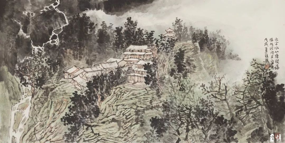 張復興 《之字水從灣澗落 樓形洞向半空懸 》 68cmx136cm