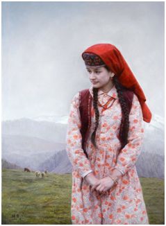 2014年油畫《花樣年華系列一》《端莊的女孩》參加博寶藝術(shù)真實(shí)的存在展