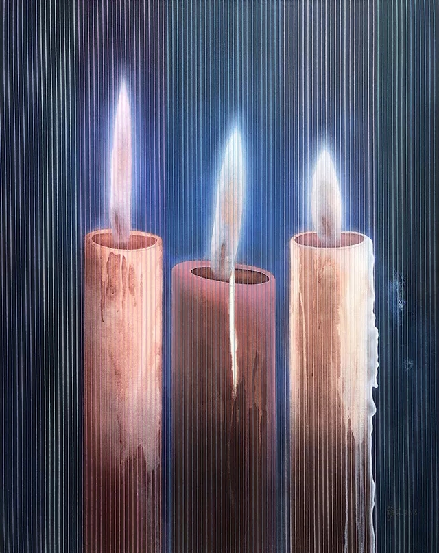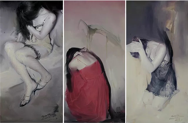 十二水 天藍(lán) 密西西比在燃燒 劉錕 布面油畫 70X90cmX3 2019