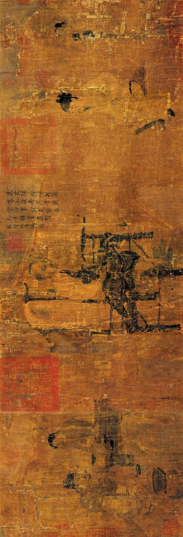 盡管此間中國(guó)的鄉(xiāng)俗藝術(shù)也在發(fā)展,但在畫壇上,佛畫則完完全全占據(jù)了主要位置,傳世的作品和畫家也多是佛畫作品和佛畫家。可見(jiàn),南北朝時(shí)期的中國(guó)繪畫藝術(shù)就與佛教結(jié)下了不解之緣。這段時(shí)期尚屬佛教傳入的初期,當(dāng)時(shí)的歷史現(xiàn)狀首先讓中國(guó)人接受的便是佛教的極端思想——對(duì)人世的徹底否定。印度佛教認(rèn)為,人生是苦難的,現(xiàn)實(shí)生活是悲慘的。并且,主張用最具悲劇色彩的方式來(lái)肯定、承擔(dān)現(xiàn)實(shí)痛苦——否定現(xiàn)世,也就是通過(guò)肯定和承擔(dān)現(xiàn)世中肉體的、精神的痛苦來(lái)否定人生,并企圖通過(guò)這種方式來(lái)達(dá)到一種理想的“善”的境界。“人生是苦難的,現(xiàn)實(shí)生活是悲慘的”,這對(duì)當(dāng)時(shí)經(jīng)歷了種種痛苦與磨難、失望和迷惘的中國(guó)人來(lái)說(shuō)是多么準(zhǔn)確??!佛教的傳入使中國(guó)人在久久的迷惑、掙扎中終于找到了“知音”。于是,中國(guó)人開始用從未有過(guò)的熾烈熱情與沖動(dòng),反復(fù)繪制著在老虎撕咬下的太子那痙攣、顫抖的身軀(《薩垂本生圖》)、忘情地描摹被剜去雙眼后放逐山林的五百?gòu)?qiáng)盜那被痛苦和恐懼扭曲了的血淋淋的面孔(《五百?gòu)?qiáng)盜成佛圖)》等一幅幅幾乎沒(méi)有一點(diǎn)人情味的血腥畫面。世上哪還有心甘情愿以身飼虎、以肉貿(mào)鴿、以頭施獸等更悲慘的嗎?這是超越生活而又似乎存在于生活的痛苦,是通過(guò)宗教的“三棱鏡”折射出的現(xiàn)實(shí)痛苦。這是對(duì)現(xiàn)實(shí)痛苦的徹底肯定,也是對(duì)現(xiàn)世人生的徹底否定。佛教的傳入使中國(guó)畫家們離開了過(guò)去的雄偉、奇美,全身心地投向佛教的悲壯、慘烈。