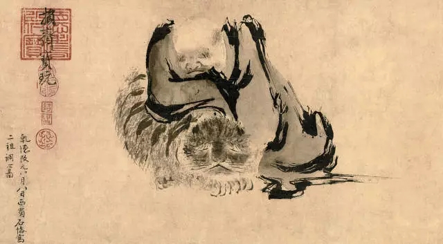 南宋·石恪 二祖調(diào)心圖 紙本設(shè)色 35.3×64.4cm 日本東京國(guó)立博物館藏