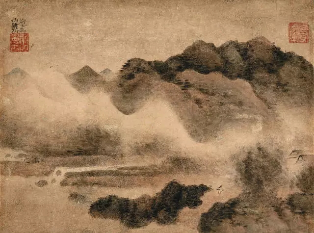 元·傳高然暉 山水圖 紙本設(shè)色 46×59cm 日本東京國(guó)立博物館藏