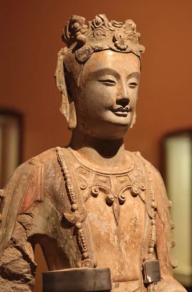 彩繪貼金石雕菩薩立像局部 北齊 1996年山東青州龍興寺窖藏出土