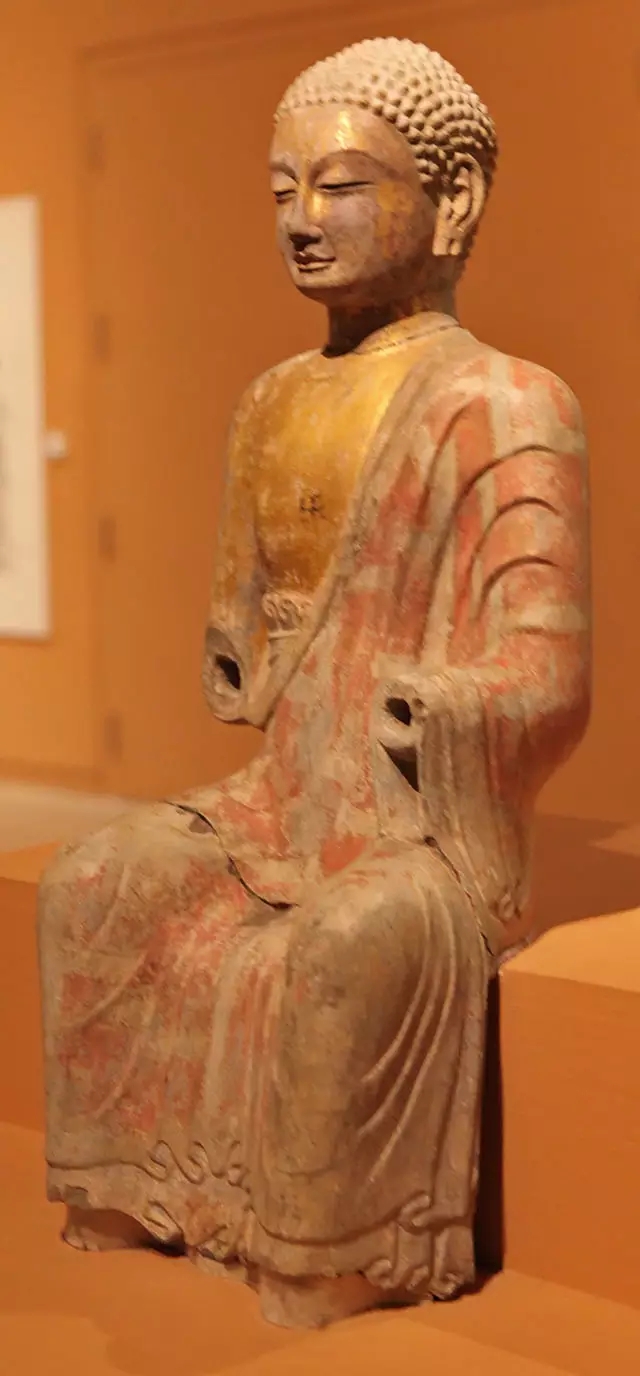 彩繪貼金石雕佛坐像 北齊-隋 1996年山東青州龍興寺窖藏出土
