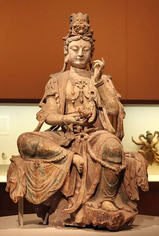 石雕菩薩坐像 山西太原天龍山石窟第21窟 唐 這尊造像的頭與身軀分別流落海外,身軀被追回后,頭仍在海外,國博這尊的頭是后配上去的