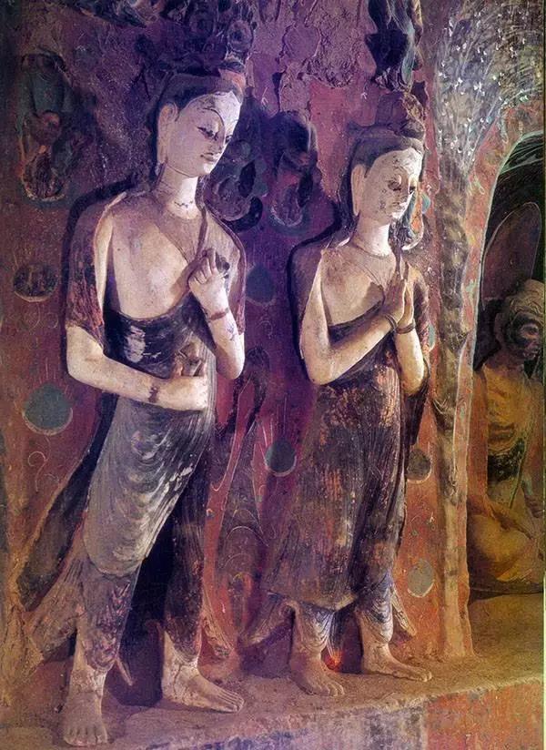 塑像是石窟的主體,壁畫在石窟中雖然對(duì)建筑起裝飾和美化作用,對(duì)雕塑起補(bǔ)充和陪襯作用,但其數(shù)量最多,規(guī)模最大,藝術(shù)技巧最精湛,內(nèi)容最豐富,涵蓋了社會(huì)生活與家庭生活的方方面面,生、老、病、死、衣、食、住、行,面面俱到,無(wú)所不包,充分體現(xiàn)了古人不同時(shí)期的文化生活,表