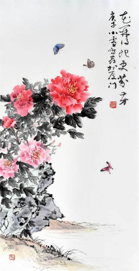 《花開得地更芬芳-牡丹》138cm×69cm 2020年