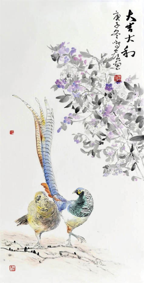 曹鳴喜作品多有參加國內外各級展覽獲獎,并被相關畫廊、藝術機構和私家收藏。曹鳴喜注重研究各門類藝術特點,他廣覽博取,中西融合;詩畫合璧,博采眾長;書印兼?zhèn)?,古今貫通。在弄清各門藝術之間的關系的基礎上,將更多精力放在中國傳統(tǒng)書畫藝術的研究上,而且以花鳥畫為主,尤精以畫魚,畫面上常有“蘇魯畫魚人”一印,作品深受社會各界青睞。詩情畫意是中國畫的重要特點,歷代文人和書畫家都賦予花鳥畫美好的象征和寓意。如牡丹象征富貴,“魚”與“余”諧音,畫在一幅畫面中為“富貴有余”;“蓮”與“連”諧音,與“魚”結合為“連年有余”;水中圍攏的一群金魚為“聚金圖”;游弋在水中的錦鯉為“前程似錦”;穿梭般游動的群魚為“力爭上游”;幾條鯉魚騰空飛起為“鯉躍龍門”等。“知魚之樂”則是春秋吋期寓言之一的莊子“《知魚之樂》(子非魚安知魚之樂)”,講述的是莊子與惠子在濠水岸邊散步,進行邏輯爭辯的事。所以中國畫也包含有更深層次的哲學知識,花鳥畫“知魚之樂”不僅帶給欣賞者陶冶情操和愉悅身心的精神享受,同時受到唯物辯證法靈魂深處的啟迪。