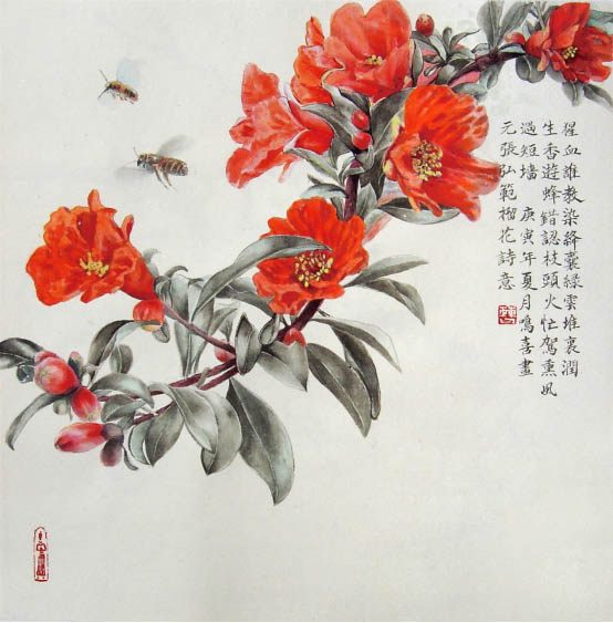 《忙駕熏風過短墻-榴花》34cm×34cm 2010年