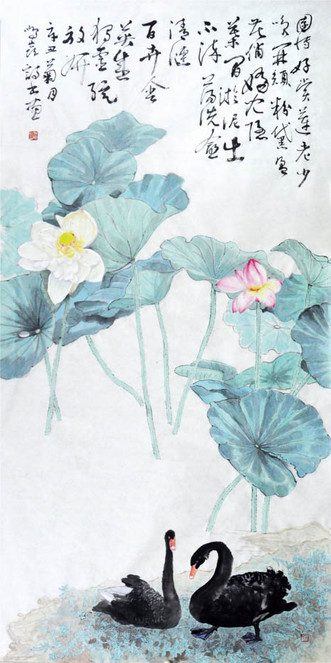 《園博好賞蓮-夏荷》(自作詩)248cm×124cm 2021年