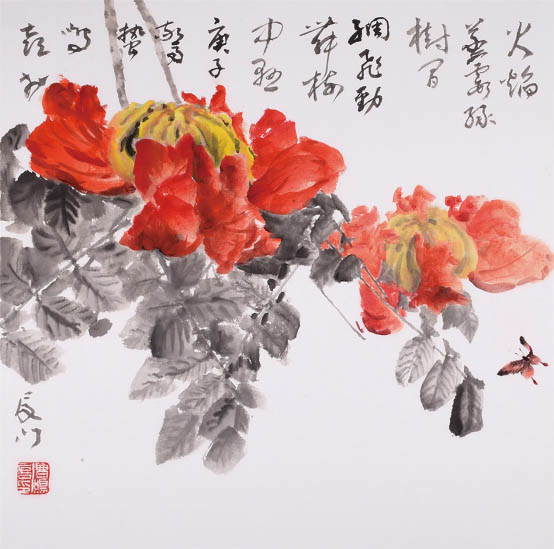 《綢飛勁舞樹中懸-火焰花》57cm×57cm 2020年