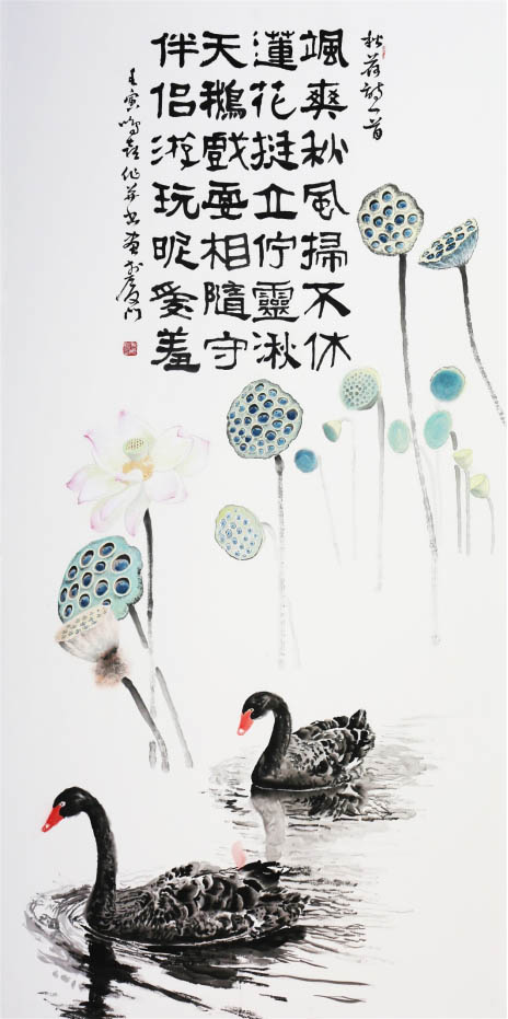 《颯爽秋風掃不休-秋荷》(自作詩)248cm×124cm 2022年