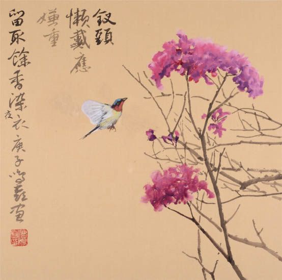 《留取余香染夜衣-紅花風鈴木》57cm×57cm 2020年