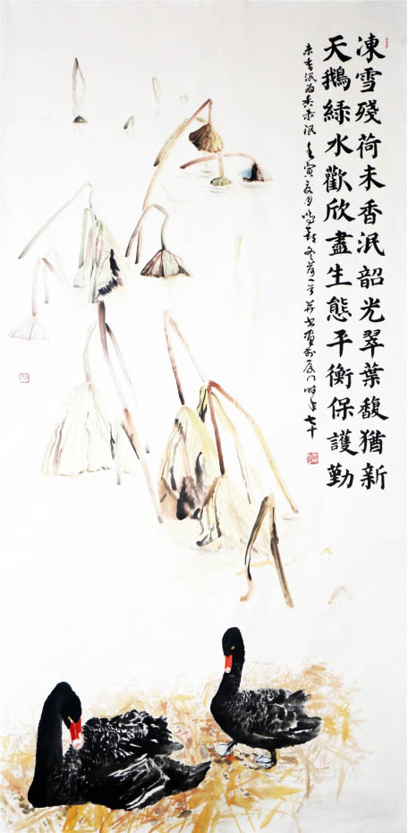 《蘆影雙棲圖》180cm×96cm 2013年