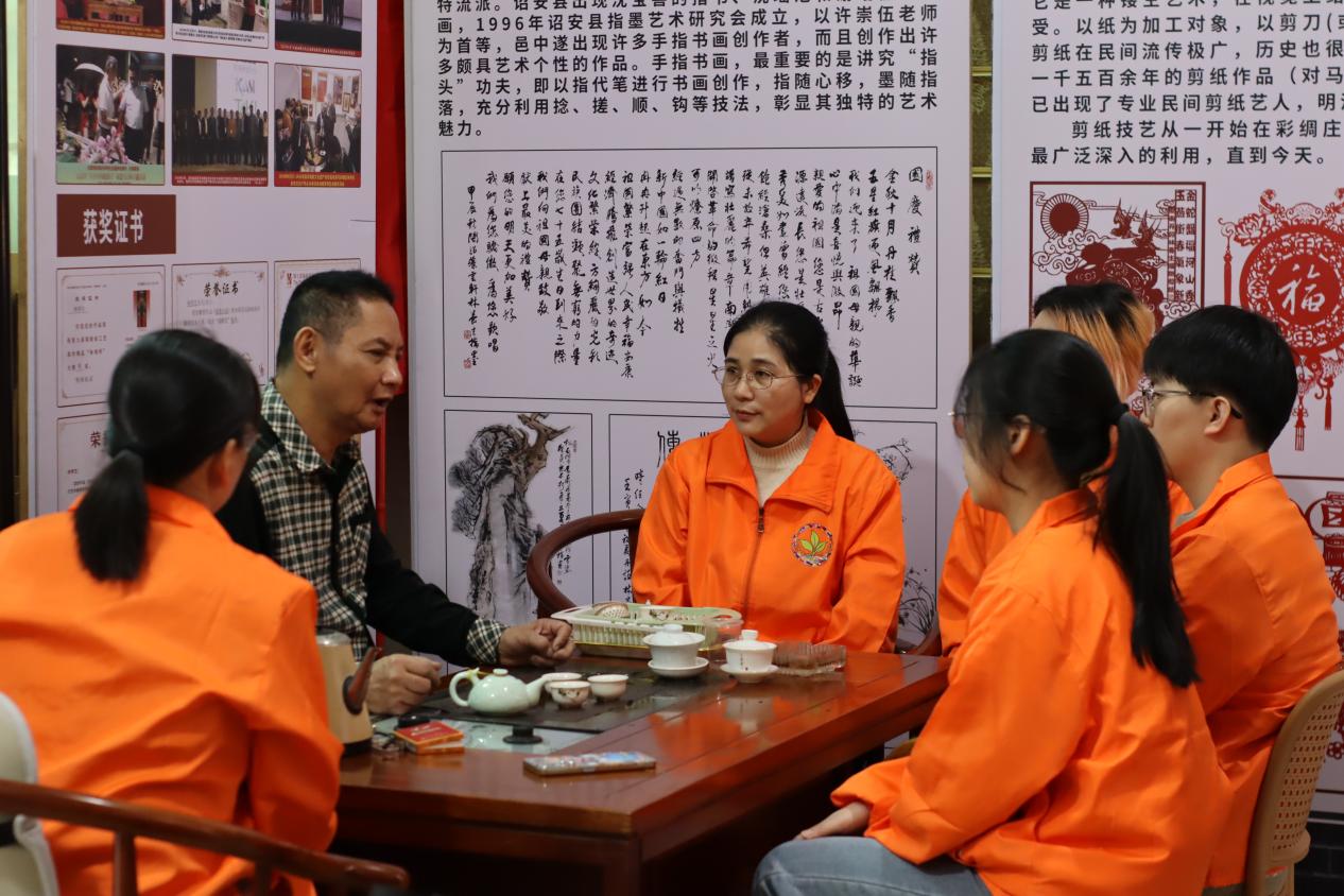 圖為實(shí)踐隊(duì)成員向林養(yǎng)生學(xué)習(xí)彩扎技藝