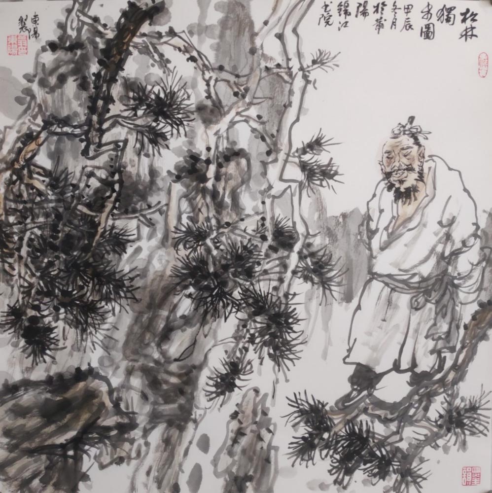 翁?hào)|陽《松林獨(dú)步圖》50×50cm