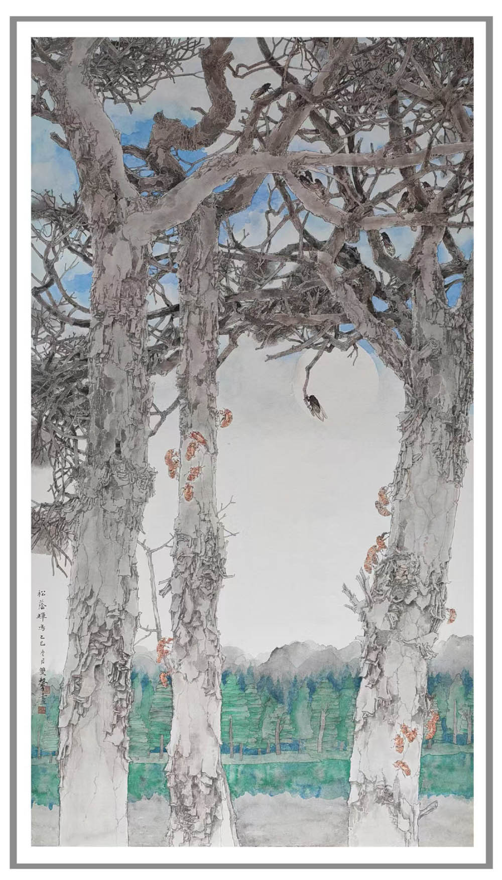 黃雙馨《松蔭蟬鳴》97×180cm