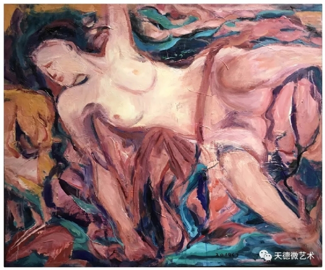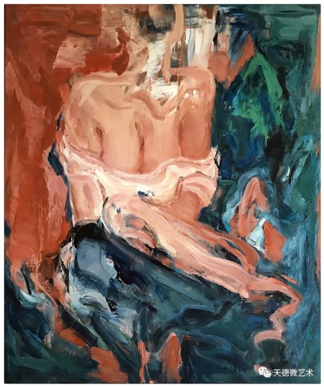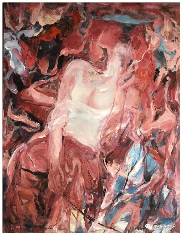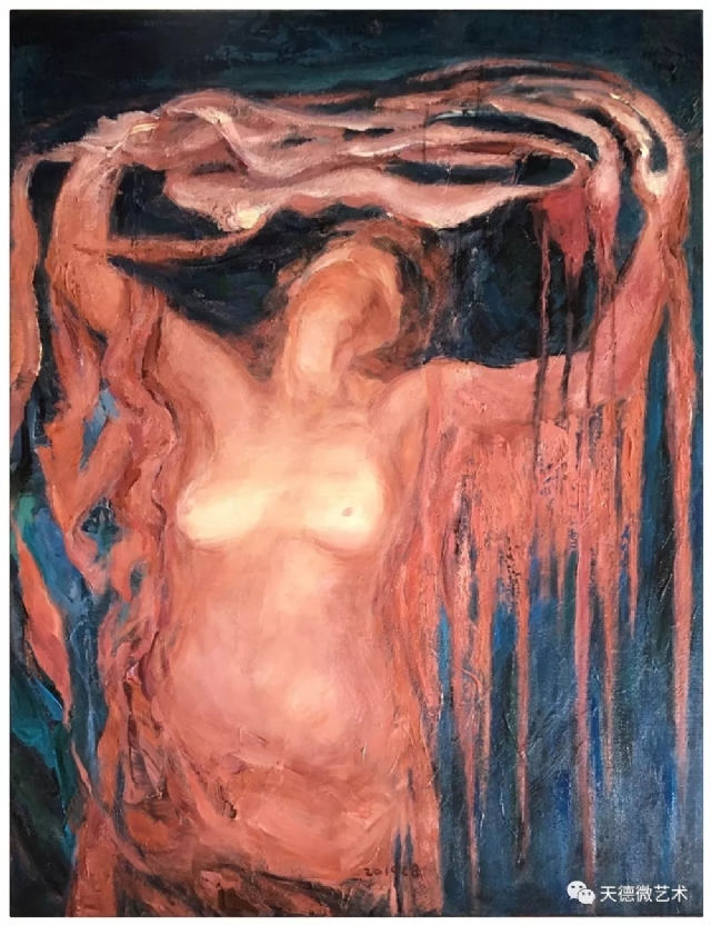 王聰微信告訴我說這次的作品起名叫“存在的自由”,我想這應(yīng)該是她當(dāng)下的心境映射吧。時(shí)間,總會(huì)繞著圈子去改變著每個(gè)人的生命軌跡,正如春之生發(fā)會(huì)走向夏的焦灼一樣。王聰也不例外,這批近作相對于去年的作品,整體上消解了些許銳氣,顯得平和許多。但是很奇怪我卻又從中聞到了蘇丁式的傷情,雖然她的畫面并不存在蘇丁繪畫的形跡,這可能是我的一種誤讀,因?yàn)槲铱吹接行┳髌访黠@帶著言不由衷或者說是故作堅(jiān)強(qiáng)的勉強(qiáng)和糾結(jié),還好整體的基調(diào)最終又恢復(fù)到向歸自然的性靈,這正是王聰藝術(shù)創(chuàng)作中難得的理性部分。